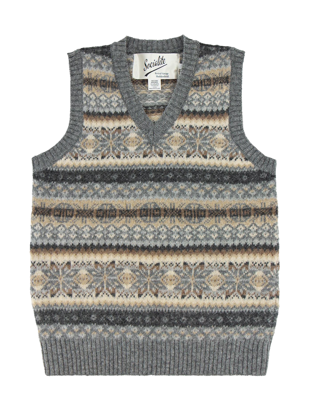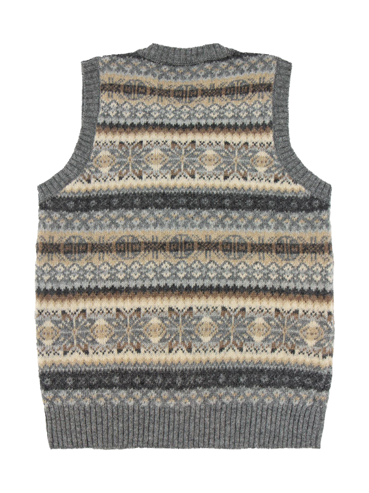 Vintage Style Shetland Wool Fair Isle Vest in Pebble Grey