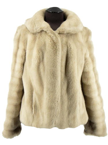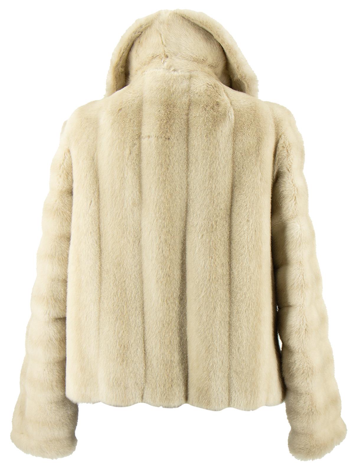 A wonderful quality, Tissavel of France, blond faux fur jacket. This is a fully lined jacket with a multi-tonal lush pile designed to mimic the effect of pelts. A perfect shade to go with a variety of winter outfits, bringing some vintage glamour to either a casual or evening ensemble. The original single hook and eye fastening below the collar to keep the jacket closed.