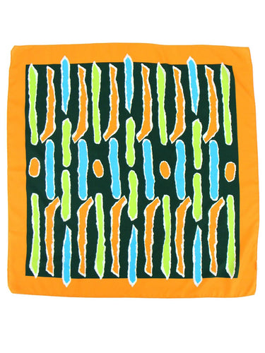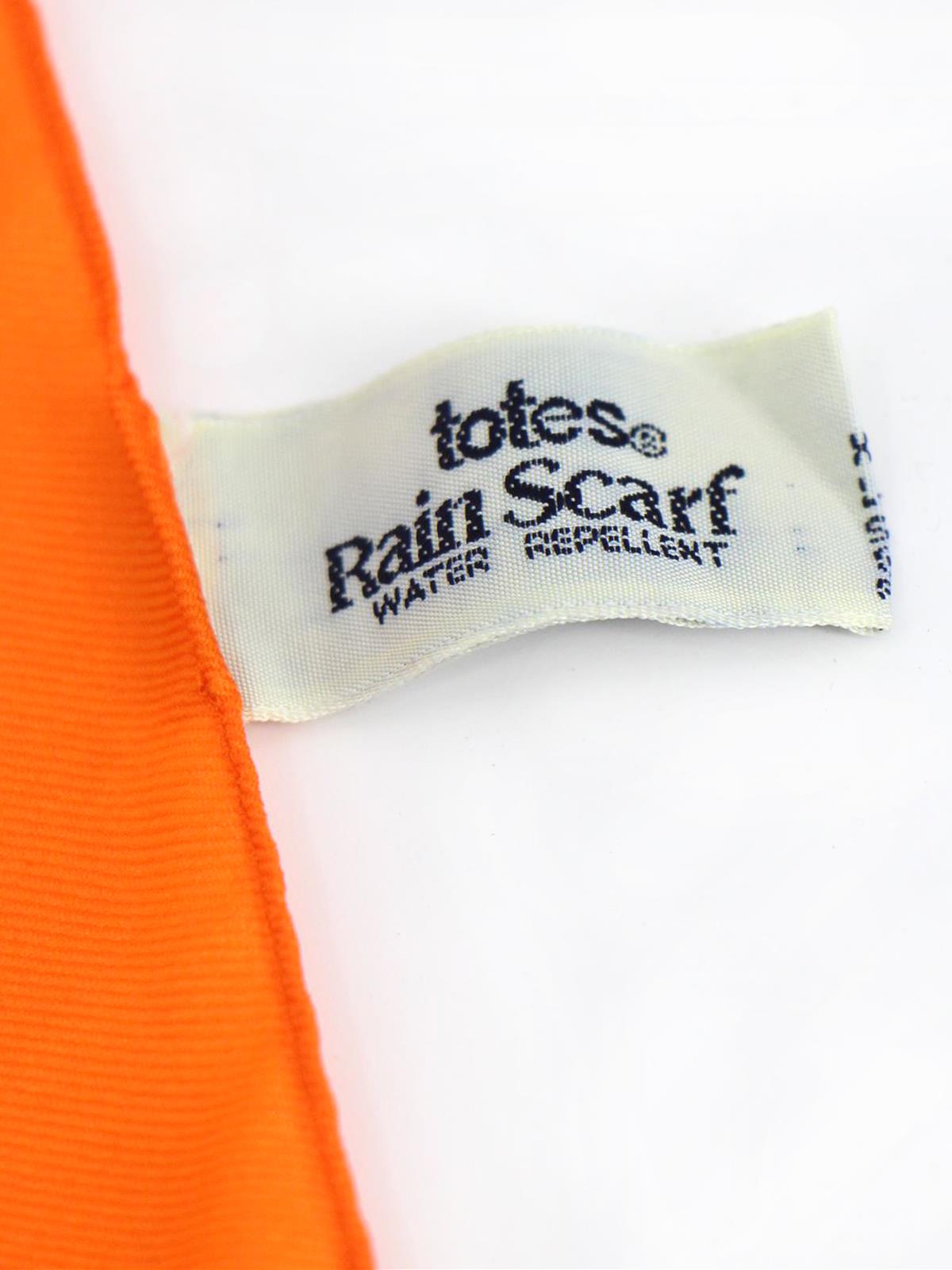 1980's 'Totes' brand water repellent head scarf in bright orange, blue and green.