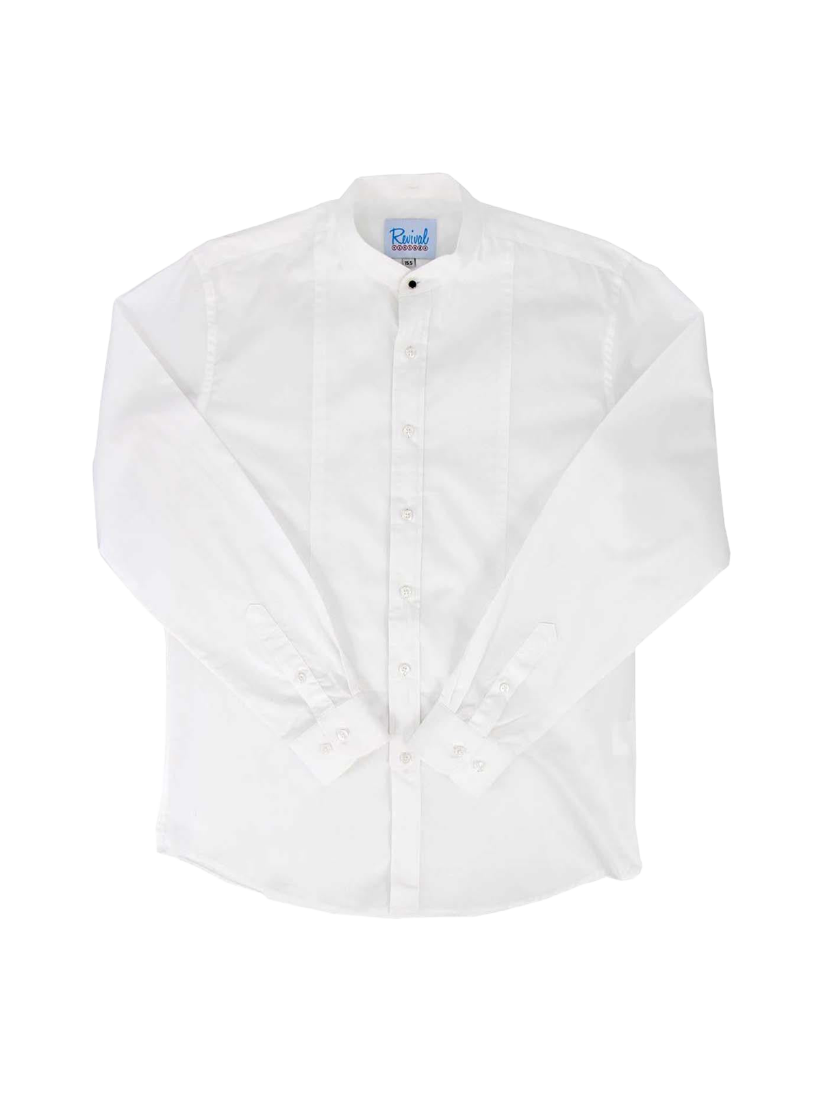 This listing is for a pure white collarless "grandad shirt" which comes with a detachable club collar. They can be worn together, or the shirt can be worn without for a different look. The detachable collar can also be worn with any of our other collarless shirts.