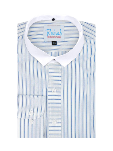 White Detachable Banker Shirt - Navy Blue Orton Stripe