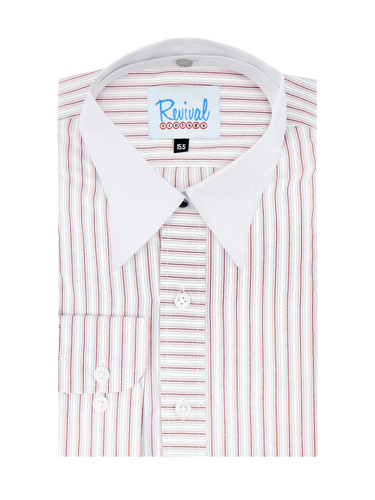White Detachable Spearpoint Shirt - Red Orton Stripe