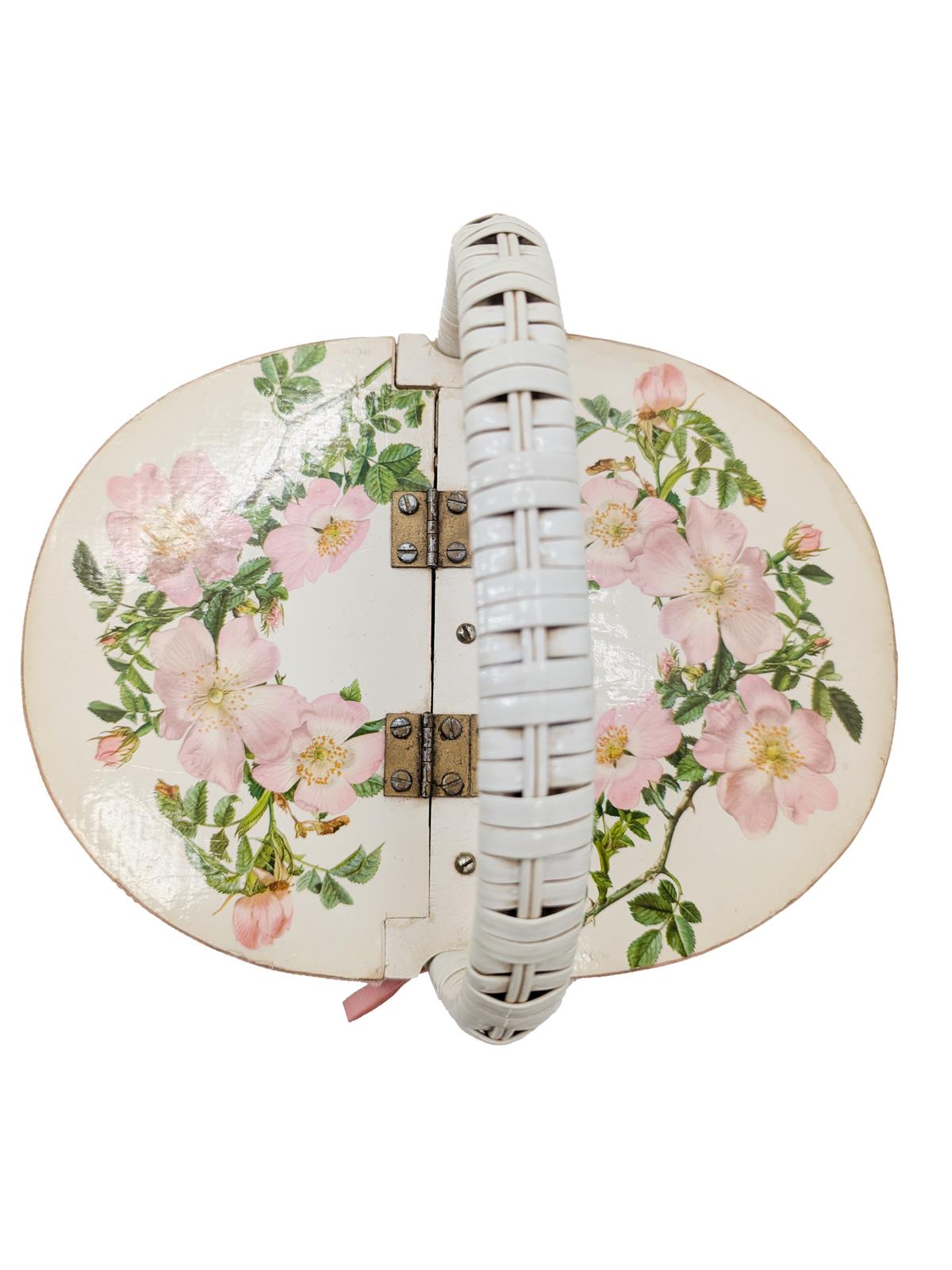 Dog rose and foliage decoupage.to the top and under side of the lid.